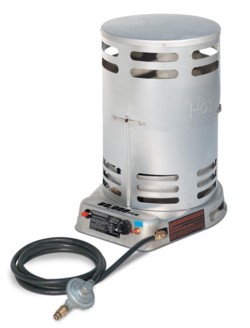 Operates up to 12 hours at 30,000 BTU/Hour setting from a standard 20 lb. propane tank.
